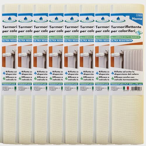 Acquaverde Set 10 Pannelli Termoriflettenti Alluminizzati Bianchi per Caloriferi 100x70 Cm con Nastro Biadesivo Incluso