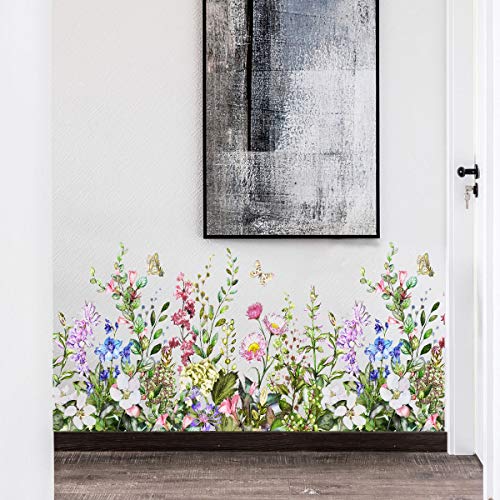 Acquerello Adesivi Murali Fiori Adesivi da Parete Pianta Verde Decorazione Murale Baseboard Battiscopa Soggiorno Camera da Letto (verde)