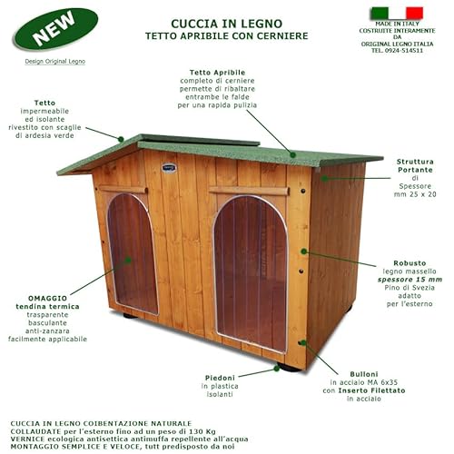 Acquista in Fabbrica Cuccia in Legno per Cani da Esterno 2 Tendine Omaggio MADE IN ITALY mod. Oasi - Doppio Ingresso e Separé