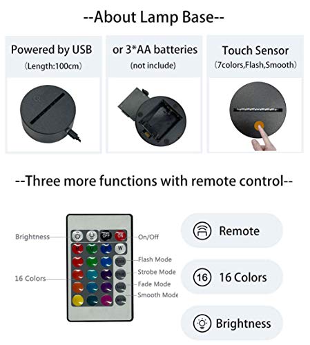 Aspetto innovativo, design raffinato, può essere utilizzato come decorazione per la camera da letto e lampada da comodino.Le famiglie e i bambini adoreranno questa lampada a 3D. Questo è il miglior regalo di Natale per il Ringraziamento per bambini di età 3,4,5,6,7 anni.