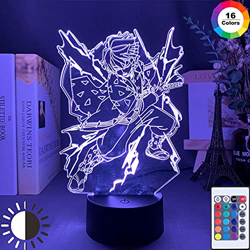 Acrilico 3D Night Light Colorful Led Illusion Lamp Lampada Anime Demone Slayer Decor Interni Illuminazione Bambino Natale o regalo di compleanno-16 colori con telecomando