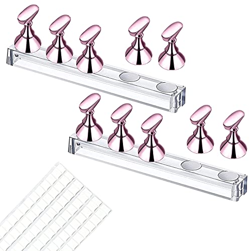 2 Set Acrilico Supporto Espositore Unghie,Display Magnetico Supporto per Pratica Unghie,Fai Da Te Nail Art Stand per Supporto Punte Unghie con 94pcs Stucco Adesivo Riutilizzabile Bianco(Rosa)