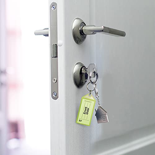 Confezione di 120 portachiavi realizzati in plastica durevole, di colori assortiti semitrasparenti, dotati di anelli in metallo ed etichetta di carta. Confezione in plastica trasparente riutilizzabile.
