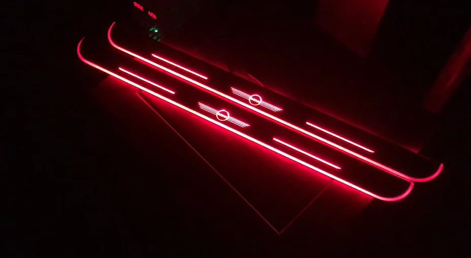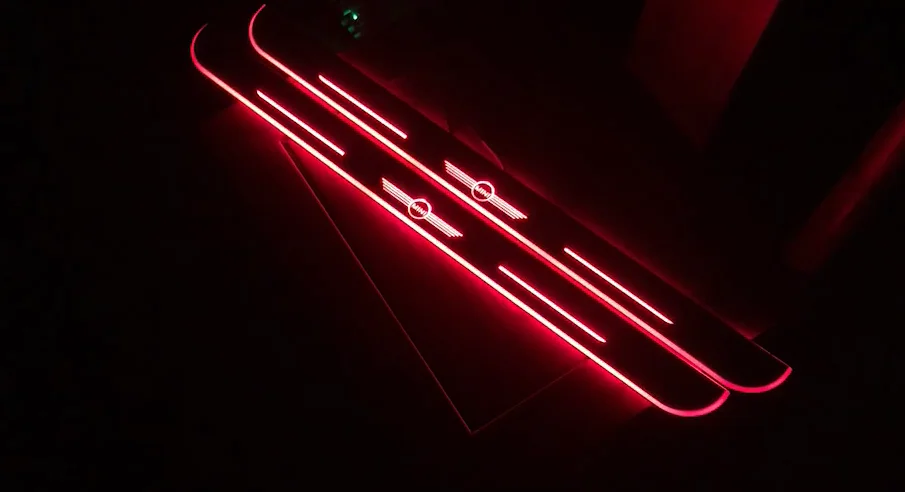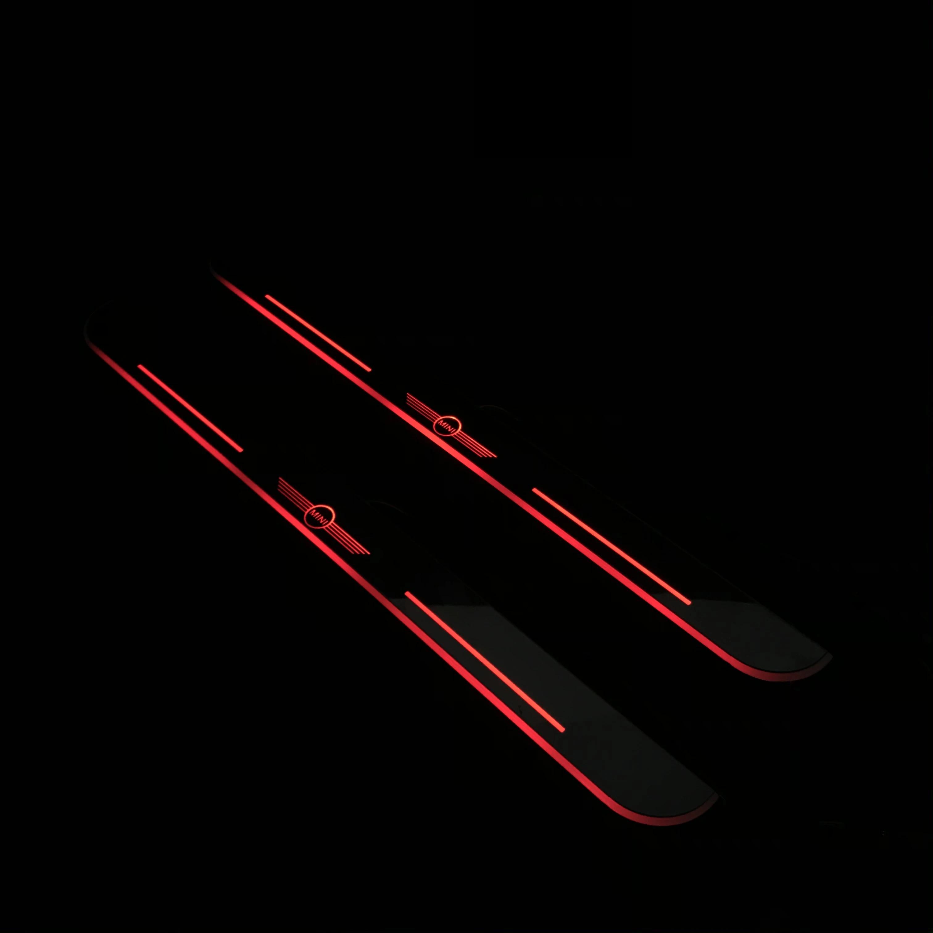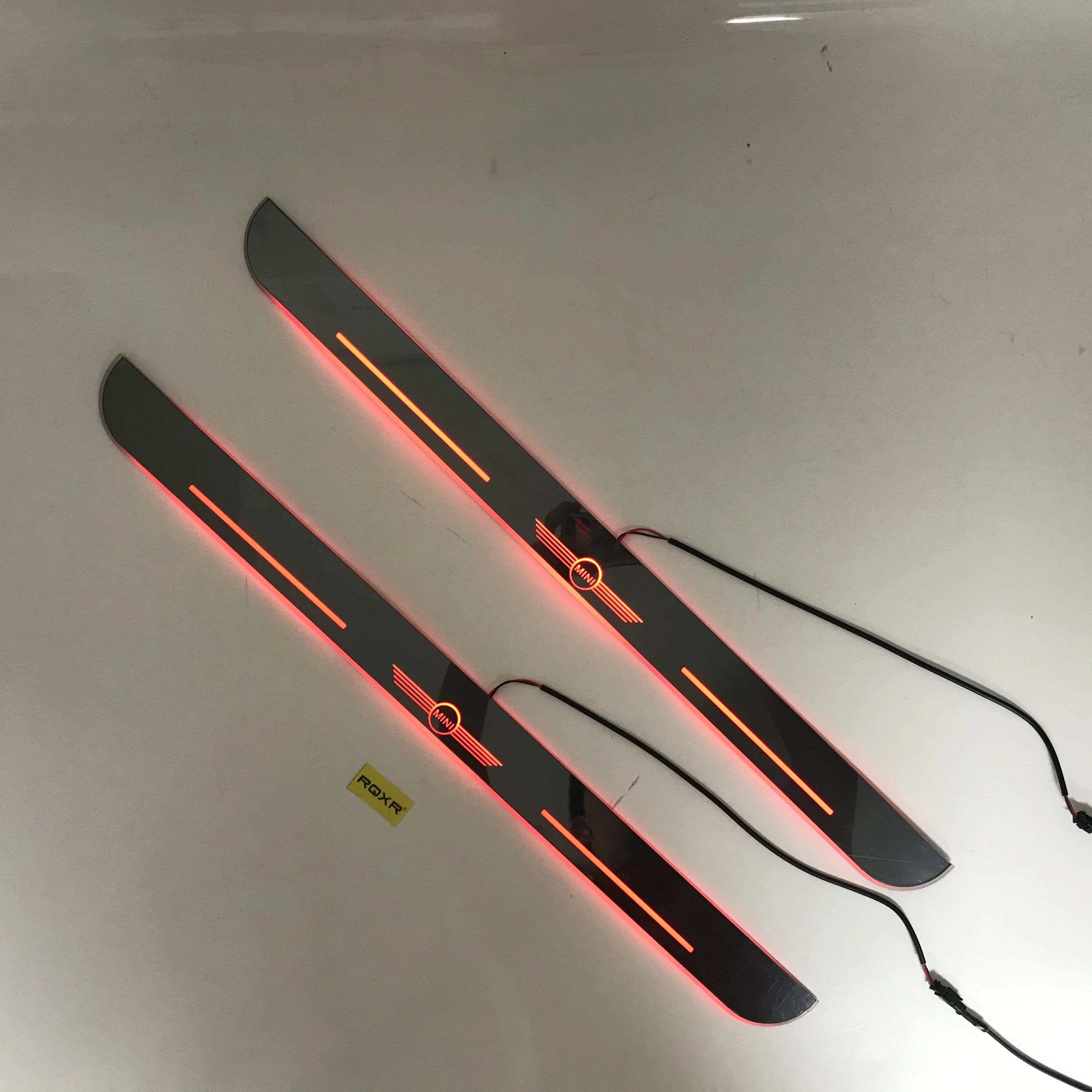 Acrylic door sill plate strip with led decorative welcome light moving door scuff for Mini