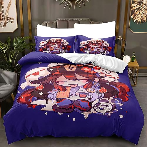 Acsewater Genshin Impact 3-Piece Bedding Sets - Genshin Impact Anime Set di biancheria da letto singolo o doppio con copripiumino e federe