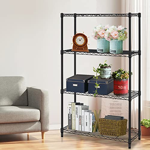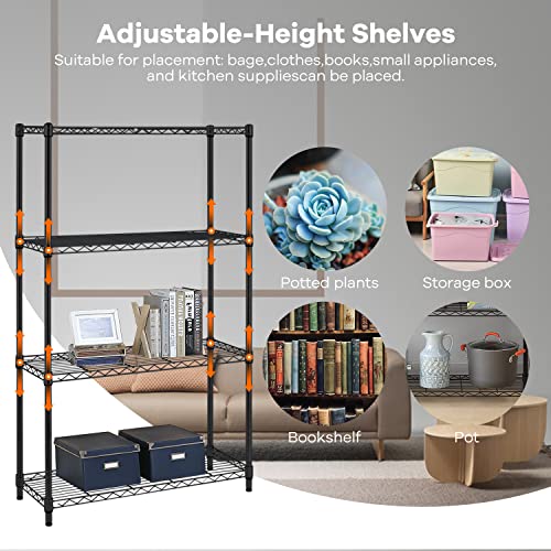 Actask Scaffalatura metalliche a 4 ripiani, Scaffale in Metallo Regolabile in Altezza, per Lavanderia Bagno Cucina Garage Giardino Dispensa Organizzazione 1000 LBS, Certificato NSF, Nero