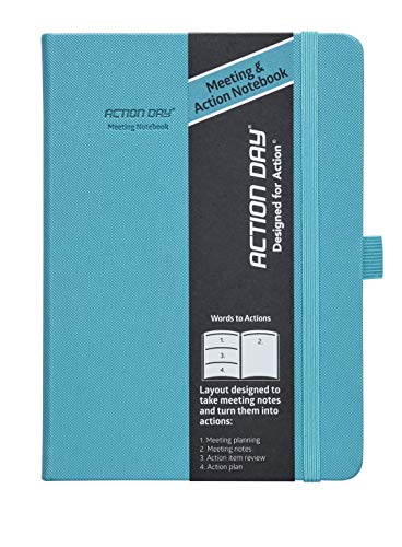 Action Day - Worlds Best, quaderno per riunione - ideato per prendere appunti e trasformarli in azione 6x8 inches (A5) Turquoise