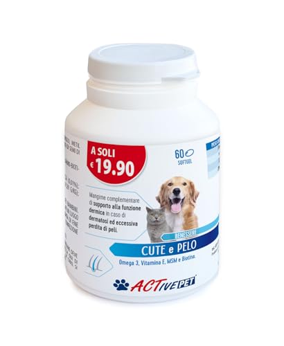 Active Pet Cute e Pelo, Mangime Complementare di Supporto alla Funzione Dermica in caso di Dermatosi ed Eccessiva Perdita di Peli, per Cani e Gatti - 1 Confezione da 60 Perle