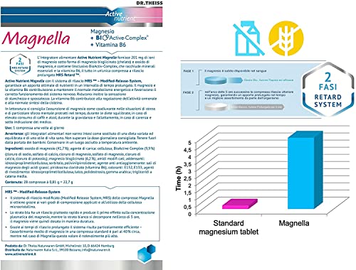 ✅ ACTIVE NUTRIENT MAGNELLA: Fornisce 201 mg di ioni di magnesio sotto forma di magnesio bisglicinato (chelato) e ossido di magnesio, e contiene l'esclusivo BioActiv-Complex, e la vitamina B6, racchiudendo il tutto in un'unica compressa a rilascio prolungato MRS Retard