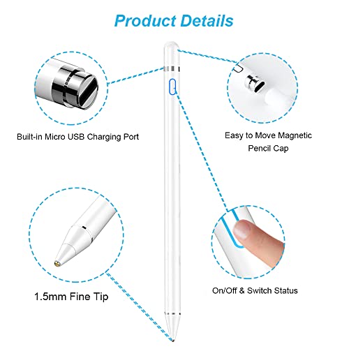 Design perfetto: la penna stilo è stata progettata per smartphone e tablet, la tecnologia sensibile da 1,5 mm offre una migliore precisione e compatibilità, offrendo un'esperienza di scrittura e disegno confortevole durante l'uso. Stylus Pen attivo, non è necessario Bluetooth o app, basta premere il pulsante per accendere e spegnere.