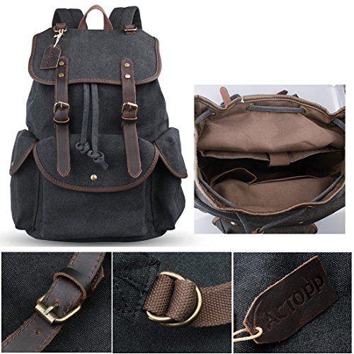AcTopp Zaino Sportivo Uomo Donna Zaino Classico Zaino da Scuola per Ragazzi, Zaino Tela Canovaccio per Campeggio Trekking Escursionismo Viaggio - Nero