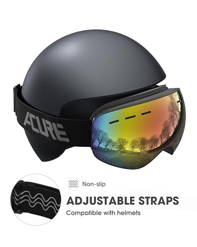 ACURE Occhiali da sci, occhiali da snowboard senza cornice, OTG compatibili, anti-appannamento, protezione UV400, occhiali da sci per chi porta occhiali da uomo, donna, adulti, adolescenti (nero, L)
