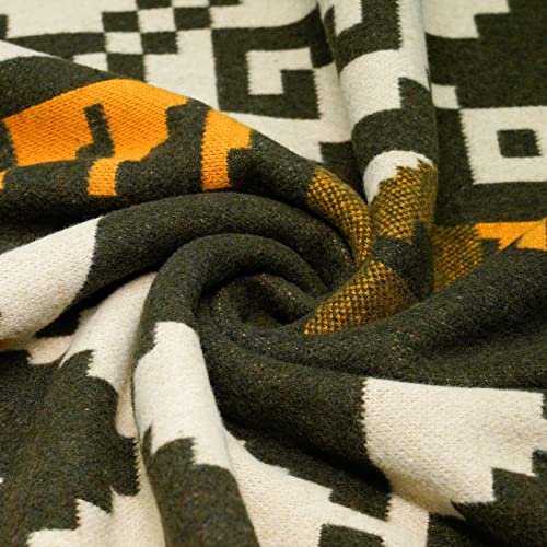 ACUSHLA Coperta in lana merino, 160 x 220 cm, coperta double-face, per divano, camera da letto, ufficio (verde militare indiano)