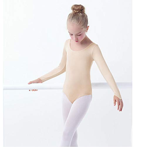 ACVIP - Body da danza a maniche lunghe, per bambine e ragazze, Bambina, color carne, M: Brüstumfang 49cm