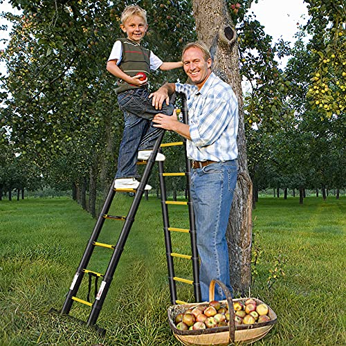 Antiscivolo e durevole: la scala telescopica è realizzata con pedale antiscivolo e design antiscivolo per i piedi. La superficie del pedale e il poggiapiedi sono dotati di linee antiscivolo irregolari. La capacità di carico di 150 kg. Puoi usarlo con sicurezza.