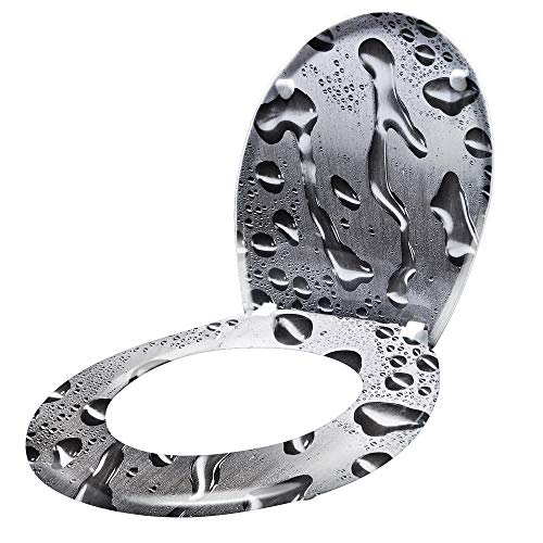 ACXIN Sedile WC con abbassamento automatico, coperchio con abbassamento automatico in Duroplast e acciaio inossidabile, antibatterico, facile da pulire, rimovibile (pioggia)