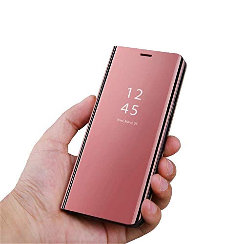 Adamarkeer Cover per Samsung Galaxy J6 Plus / J4 Plus Case Placage Flip Specchio Case Smart Clear View Standing Cover Antiurto Protettiva Custodia PU Pelle Cover Bumper Cover (Oro Rosa)