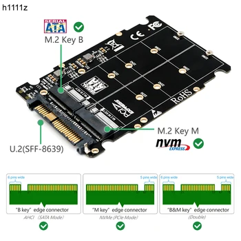 M.2 SSD to U.2 Adapter 2in1 M.2 NVMe and SATA-Bus NGFF SSD to PCI-e U.2 SFF-8639 Adapter PCIe M2 Converter for Desktop Computers