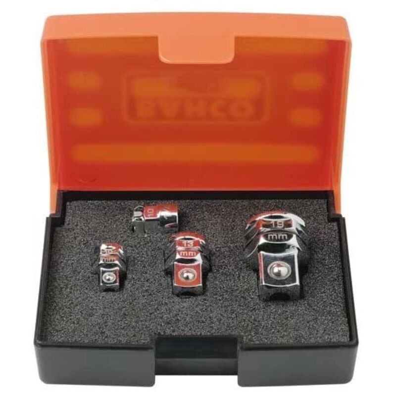 Chiavi Accessori 632 4 PCS 'Set di adapuntadores per chiavi a cricchetto, 4 pzs|aleación in acciaio di alto rendimiento|pulido fino|adapuntadores per bussole da 1/4, 3/8 e 1/2 con seguridad|adapuntador pulsante di fissaggio per punte da 1/4 con anello di contención|suministrado in un astuccio di planaástico compacto|iso 1174, din 3120|adapuntadores di ricambio disponibili