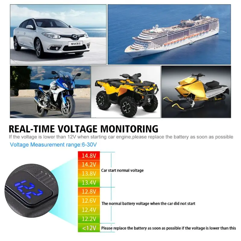 12V SAE To USB Adapter with Voltmeter ON OFF Switch Motorcycle Quick Disconnect Plug with Waterproof Dual QC3.0 USB Fast Charger