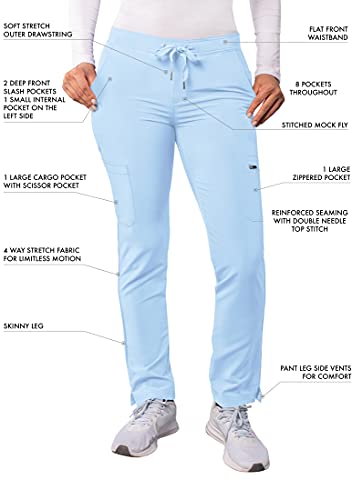 Adar Addition Scrubs per Donna - Pantaloni Skinny per Lo Scrub Cargo con Coulisse - A6104 - Sky Blue - S