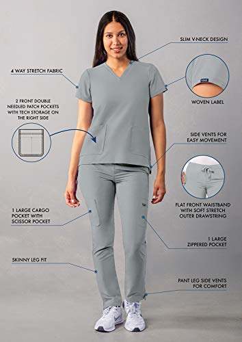 Adar Addition Uniforme Medico Donna - Maglia Scollo a V & Pantaloni Skinny Cargo - A9200 - Silver Gray - L