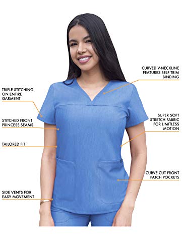 DESIGN: Per un Ambiente Sanitario Specialistico, Funzionalità & Eleganza Superiori. Maglia per Camice con Scollo a V con Tripla Cucitura per Prestazioni Senza Pari. Cuciture principessa frontali & Pince Posteriori, Spacchi Laterali Per Facilitare il Movimento. Senza Etichette per maggiore comodità