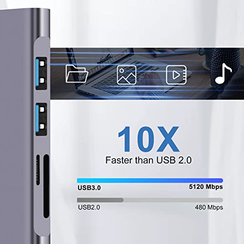 Hub USB C, Adattatore USB C 5-in-1 con 3 Porte USB e Lettore di Schede SD microSD Compatibile con MacBook, Samsung Galaxy, Computer Portatili, Telefoni Cellulari e Tablet