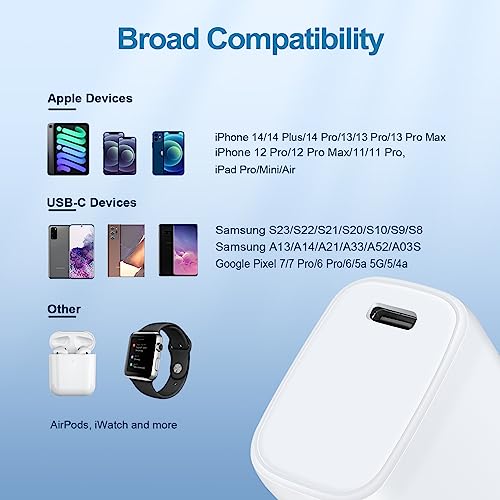 Ampia compatibilità: l'alimentatore adattivo USB C compatibile con iPhone 15/14/13/13 Mini/13 Pro/13 Pro Max/12/12 Mini/12 Pro/12 Pro Max/11/11 Pro/SE 2020/XR/XS/XS Max/X/8 Plus, Samsung Galaxy S23/S23 Ultra/S23 Ultra/S23 Ultra/S;