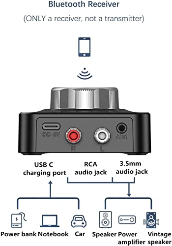 【Adattatore audio Bluetooth 5.0 wireless】 Il ricevitore audio Bluetooth 5.0 ti consente di trasmettere la musica in streaming su telefoni e tablet in modalità wireless al tuo altoparlante audio stereo HIFI, amplificatore tramite jack RCA Phono o jack audio da 3,5 mm, adattatore ideale per aggiungere il Bluetooth wireless funzionalità al tuo sistema di altoparlanti esistente e goditi la vita tecnologica wireless.