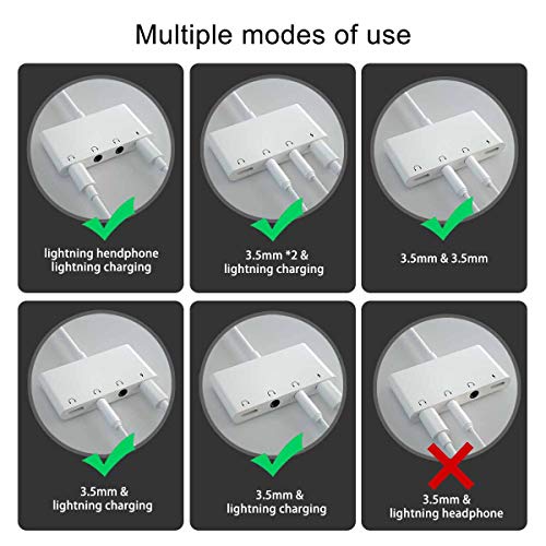 【Design di aggiornamento】 Design 4 in 1, jack per cuffie Lighting (supporta musica, chiamate e controllo del cavo) + doppio jack per cuffie da 3,5 mm (supporta solo musica) + Porta di ricarica Lighting (supporta solo la ricarica). Nota: il jack per cuffie Light-ning e il jack per cuffie da 3,5 mm non possono essere utilizzati contemporaneamente, è possibile utilizzare contemporaneamente il doppio jack per cuffie da 3,5 mm.