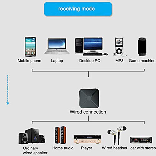 Ampia compatibilità, con cavo da 3,5 mm e cavo da 3,5 mm a 2RCA, questo adattatore per trasmettitore del ricevitore può essere ampiamente utilizzato nel tuo computer, laptop, impianto stereo domestico, auricolare, smartphone, lettore Mp3, per lettore CD, ecc.
