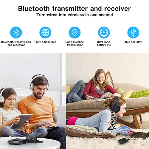 Adattatore audio wireless Bluetooth 5.0 2 in 1, adattatore da 3,5 mm, trasmettitore Bluetooth 5.0, ricevitore Aux, adattatore audio Bluetooth per TV, PC, cuffie, altoparlanti (nero)