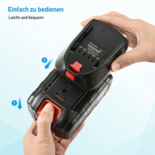 Comodo da usare: la parte inferiore del convertitore è compatibile con batterie agli ioni di litio, la parte superiore con l'host dell'utensile elettrico. Finché la batteria è collegata, può utilizzare la maggior parte degli strumenti a batteria agli ioni di litio con una vasta gamma. Struttura compatta, leggera e portatile, facile da riporre e trasportare