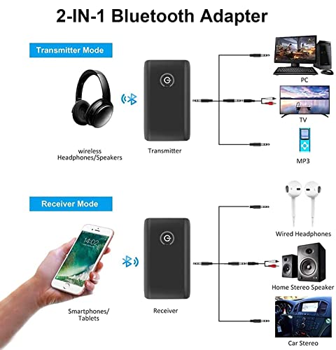 Bluetooth ovunque: come trasmettitore audio Bluetooth (modalità TX), trasforma un televisore non Bluetooth, PC, lettore CD, iPod, laptop, tablet, MP3/MP4 (incluso ma non limitato a) in un trasmettitore Bluetooth con ingresso jack da 3,5 mm. Come ricevitore audio Bluetooth (RX), è ideale per il sistema audio in streaming musicale a casa o in auto. Goditi l'audio simile al CD HIFI.