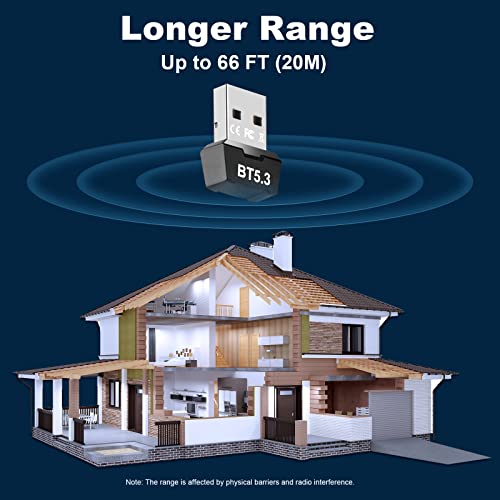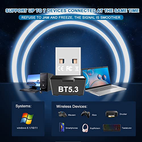 【Bluetooth 5.3】 Adattatore Bluetooth USB 5.3 con l'ultimo Bluetooth 5.3 + EDR, velocità dati più elevata (3 Mbps) e minore consumo energetico;