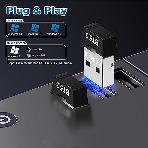 Adattatore Bluetooth USB 5.3, Dongle Bluetooth Collega e Usa Chiavetta Bluetooth per pc Desktop Laptop Compatibile con Windows 11/10/8.1/7