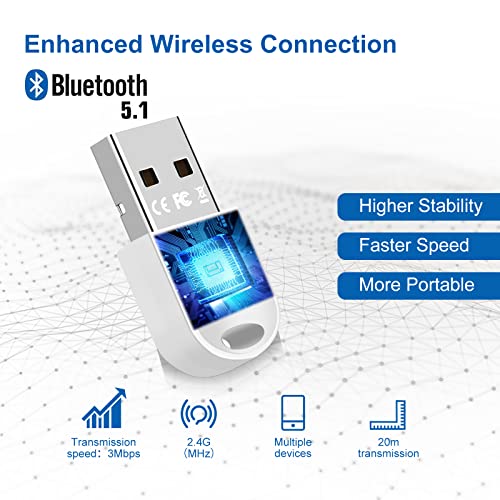 Adattatore Bluetooth PC, USB Bluetooth 5.1 Dongle EDR Bluetooth Stick per PC, desktop, laptop compatibile con Windows 11/10/7, Bianco