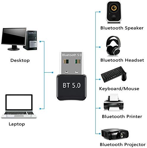 Adattatore USB Bluetooth 5.0, Mini Bluetooth USB Dongle Ricevitore Trasmettitore per PC, cuffie, laptop, tastiera, mouse, stampante, Windows 10, Plug & Play