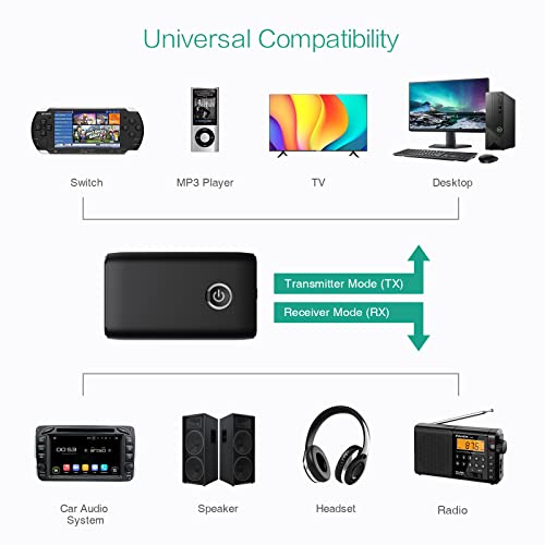 【Facile da Usare】- Basta collegare il ricevitore Bluetooth alla porta AUX di altri dispositivi e puoi rispondere a una chiamata o ascoltare musica tramite la connessione Bluetooth. Progettato con l'interruttore RX/TX, puoi cambiare liberamente la modalità di trasmissione/ricezione. Inoltre, è progettato con cura per rispondere/riagganciare/rifiutare una chiamata/riprodurre o mettere in pausa la musica tramite il pulsante multifunzione per mantenere la sicurezza durante la guida.