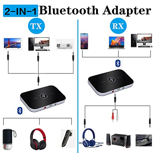 Adattatore Bluetooth 5.0, adattatore Bluetooth AUX, trasmettitore ricevitore Bluetooth 2 in 1 con RCA da 3,5 mm,HD a bassa latenza, Per TV, PC, Sistema Home Stereo (Nero)