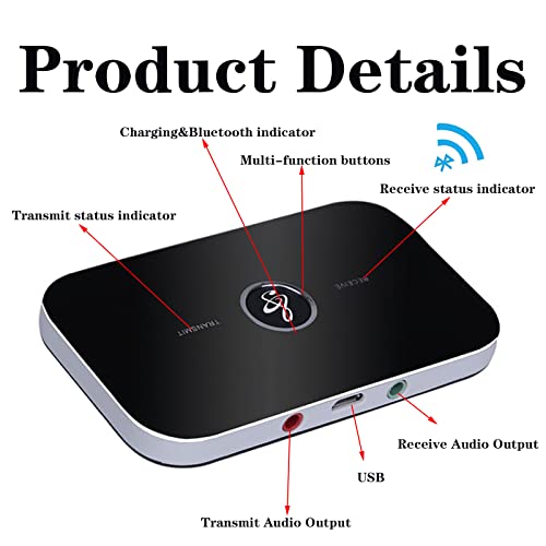 ️ 【Adattatore Bluetooth 5.0】adattatore blutooth Utilizzo della tecnologia 5.0, bassa latenza e più stabile. L'adattatore Bluetooth supporta la modalità trasmettitore (TX) e la modalità ricevitore (RX).