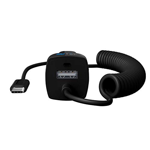 Adattatore Compatible con caricabatteria da auto USB tipo C SDTEK con cavo Compatible con Samsung Galaxy S8/S9/S10/S20/S21/S22, A12/A13/A03s, Xcover, Google Pixel, Huawei, Moto + porta di ricarica USB (nero)