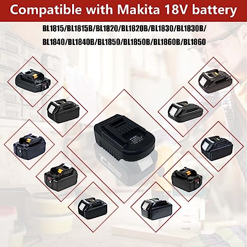 Completamente compatibile: adattatore batteria di ingresso 14,4 V ~ 18 V, Makita 14,4 V ~ 18 V, batteria agli ioni di litio BL1430, BL1440, BL1450, BL1460, BL1815, BL1830, BL1840, BL1850, BL186, BL1430B, BL1460. B BL18 50B BL1860B Completamente compatibile con BL1850B BL1860B ecc.