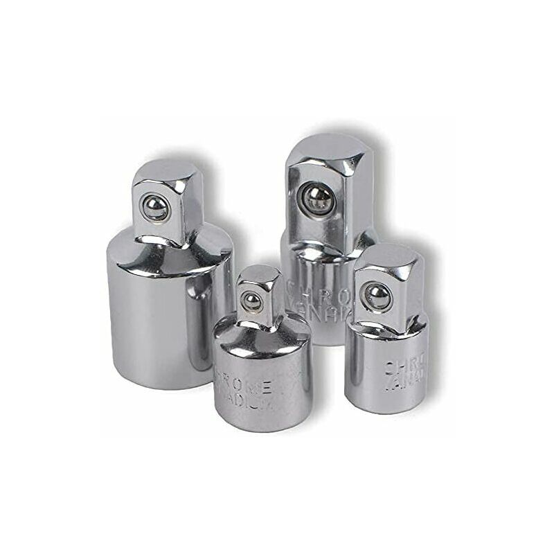 Il set di adattatori a cricchetto include -4 prese da 1/4 a 3/8 - da 3/8 a 1/4 di pollice - da 3/8 a 1/2 - da 1/2 a 3/8 < p>Alta qualità - Gli adattatori di estensione sono realizzati in acciaio cromato.Gli adattatori e i riduttori sono realizzati in acciaio cromato premium ad alta resistenza con rivestimento in fosfato di manganese per aiutare a resistere alla ruggine e alla corrosione e garantire una durata di utilizzo. Uso Uso generale - Questo set di barre di prolunga per cacciavite con codolo esagonale è progettato per soddisfare una varietà di esigenze.Offre versatilità e praticità indipendentemente dallo strumento che hai scelto di utilizzare. Scopo - Il blocco a sfera caricato a molla assicura una perfetta aderenza alla testa del conducente per evitare che scivoli durante l'uso. Appositamente lavorato per adattarsi saldamente a un cacciavite manuale, una chiave per trapano o una chiave a percussione. Aiutante ideale per la vita e il lavoro Materiale durevole Ogni