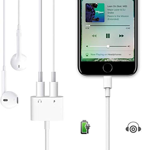 Adattatore per cuffie per iPhone Adattatore per auricolari a doppia porta Adattatore per audio Adattatore di ricarica Connettore per cavo ausiliario Compatibile con iPhone 7/7Plus/8/8Plus/X/X/XS/XR