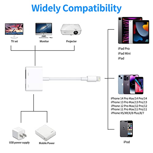 【Ampia compatibilità】Il nostro convertitore HDMI è stato certificato da Apple MFI, può essere compatibile con iPhone 14 Pro Max / 14 Pro / 14 Plus / 14 / iPhone 13 Pro Max / 13 Pro / 13 / iPhone 12 Pro Max / 12 Pro / 12 Pro / 12 Mini / iPhone 1 Pro Max / 11 Pro / 11 Pro / 1 Pro / 1 XS / XR / X / 8 /8 Plus / 7 / 7 Plus, iPad Pro/Air/mini, iPod, supporta tutti i sistemi iOS
