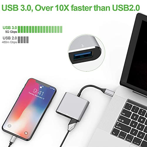 Trasferimento USB 3.0 ad alta velocità - L'hub USB di tipo c 3.1 supporta il trasferimento di dati ad alta velocità fino a 5 Gbps (5120 Mbps), 10 volte più veloce di USB 2.0 (480 Mbps), consente di collegare unità flash USB, disco rigido, tastiera, mouse, stampante, chiavetta USB, lettore MP3 ecc.