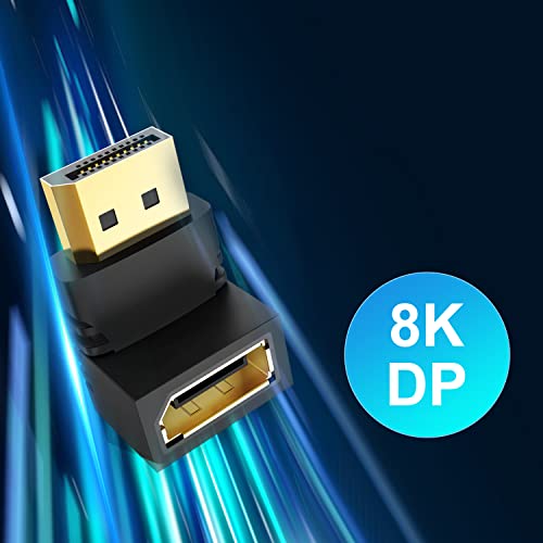 J&D Adattatore DisplayPort a 90 Gradi e 270 Gradi, 2 Pacchi Placcato Oro Angolo Retto da Maschio a Femmina Convertitore DisplayPort (DP) Adattatore da 4K DP a DP