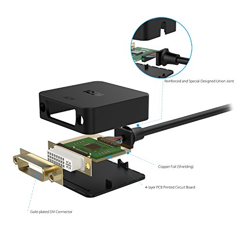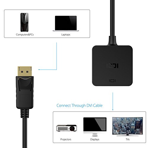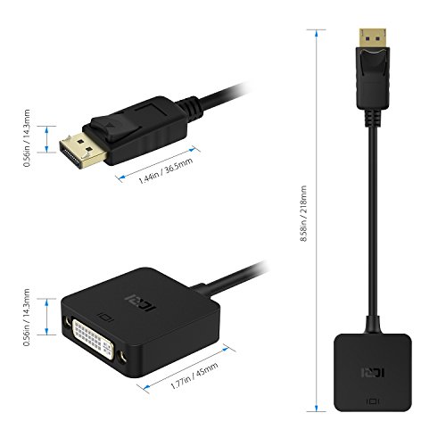 Adattatore DisplayPort a DVI, ICZI Cavo Convertitore DP su DVI Femmina, Connettori Dorati, con Cappuccio Antipolvere per HDTV, Monitor, Proiettore, Portatile e Altri, Nero